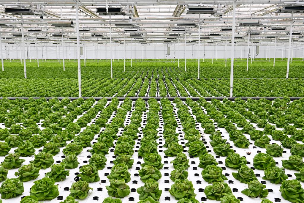 10月26日,楊凌智慧農業(yè)示范園智慧溫室內通過無土栽培技術種植的蔬菜。新華社記者 鄒競一 攝