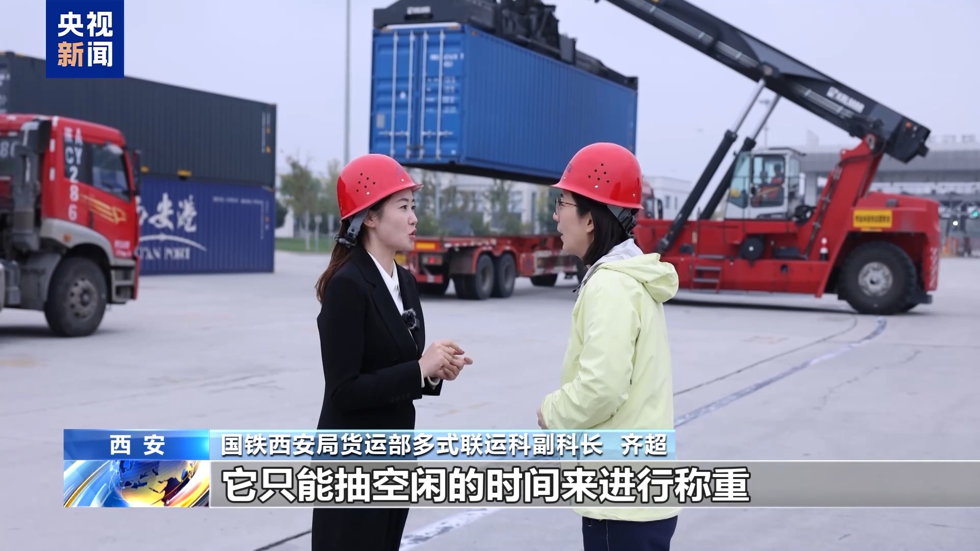 國(guó)鐵西安局貨運(yùn)部多式聯(lián)運(yùn)科副科長(zhǎng) 齊超:因?yàn)辇堥T吊的主要任務(wù)是為了裝卸火車,只能抽空閑的時(shí)間進(jìn)行稱重,所以集卡司機(jī)等待的時(shí)間非常長(zhǎng),而且沒(méi)有確定性,也不知道什么時(shí)候能稱到自己。