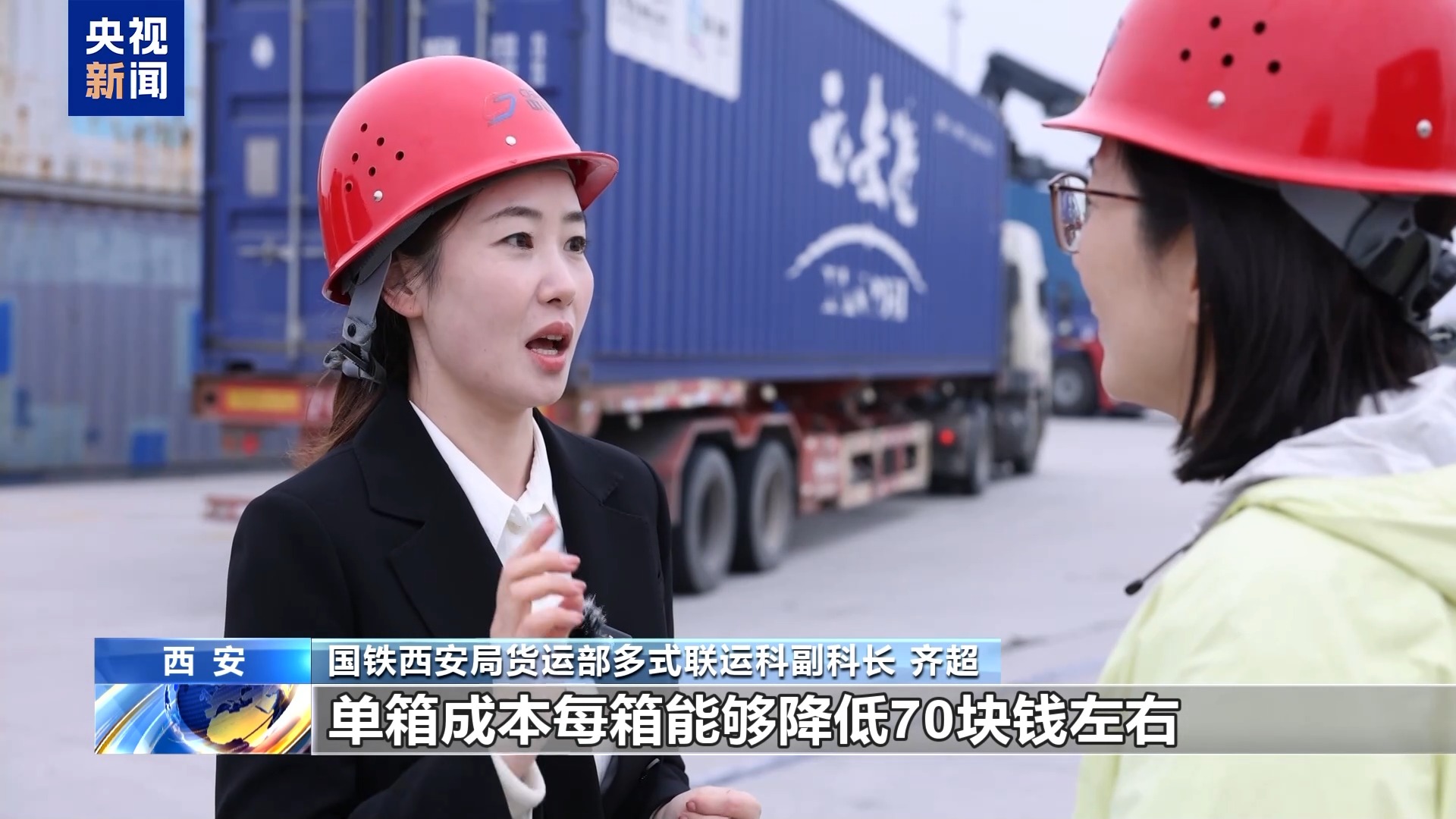 國(guó)鐵西安局貨運(yùn)部多式聯(lián)運(yùn)科副科長(zhǎng) 齊超:這個(gè)降本非常明顯,比如原來(lái)可能拉一次200塊錢,一天可能最多跑兩趟,賺400塊錢。如果現(xiàn)在能一天跑五趟,就能賺1000塊錢,那單趟成本就愿意降低。我們大概測(cè)算了一下,經(jīng)過(guò)改善之后,單箱成本每箱能夠降低70塊錢左右。