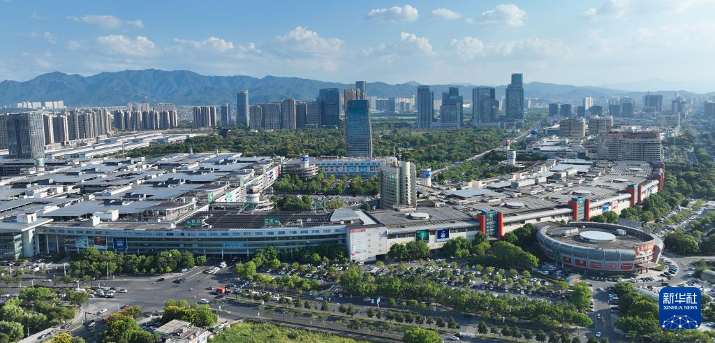 鳥瞰義烏國際商貿(mào)城(無人機照片,9月6日攝)。新華社發(fā)(何錦程攝)