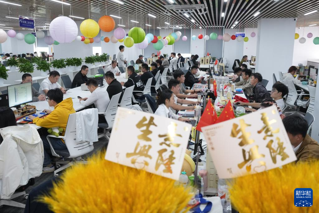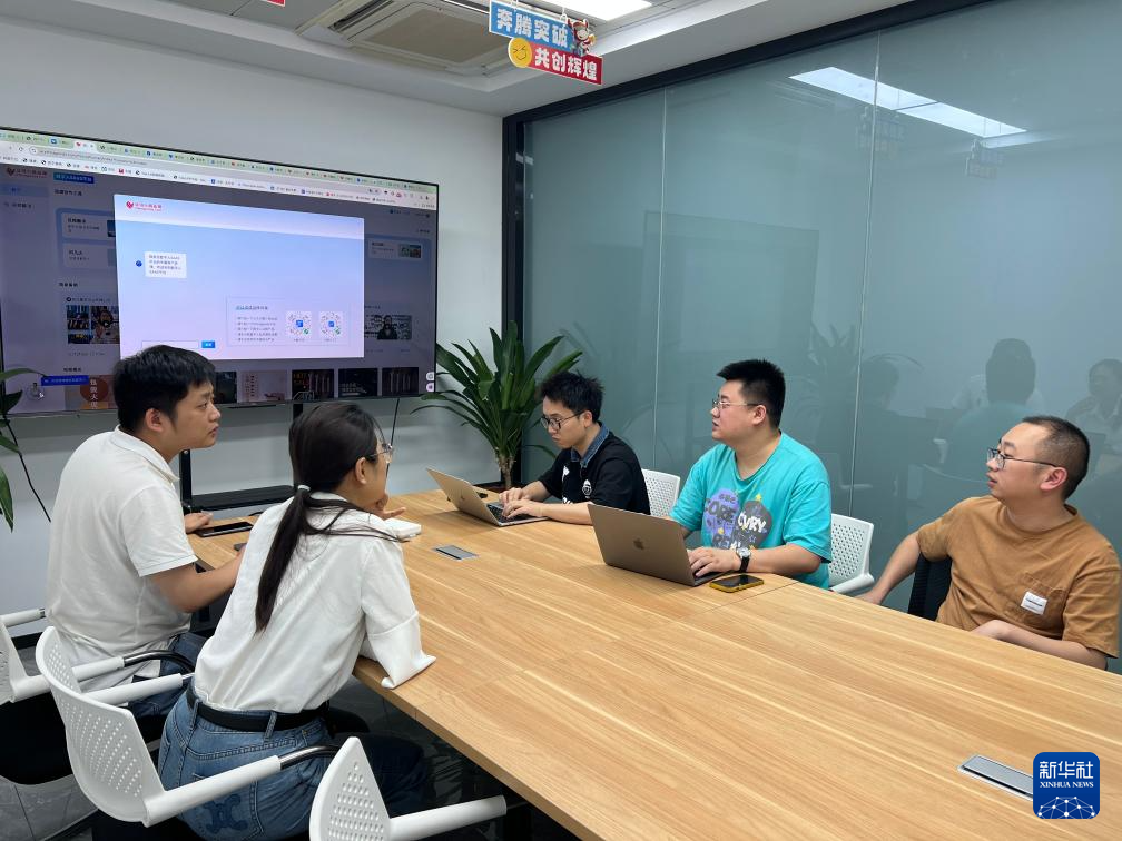 Chinagoods AI智創(chuàng)服務平臺的技術(shù)人員在討論一款新產(chǎn)品的設計(5月17日攝)。新華社發(fā)