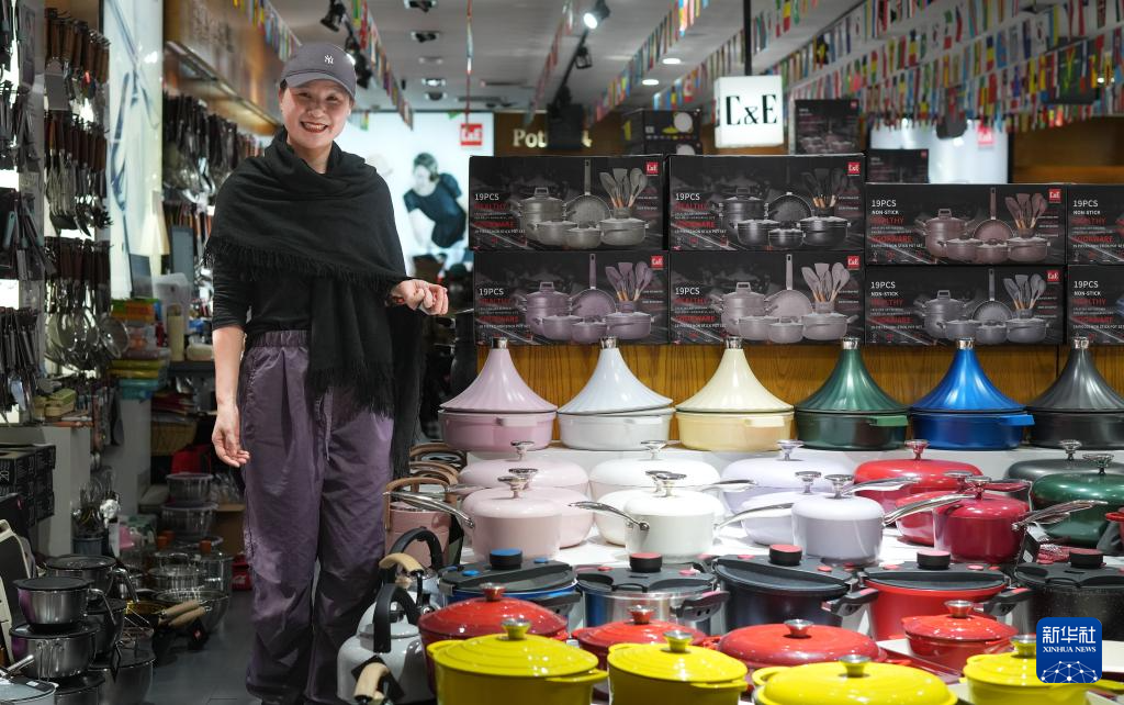義烏創(chuàng)藝廚具創(chuàng)始人劉萍娟在她的廚具店里(10月9日攝)。新華社記者 翁忻旸 攝