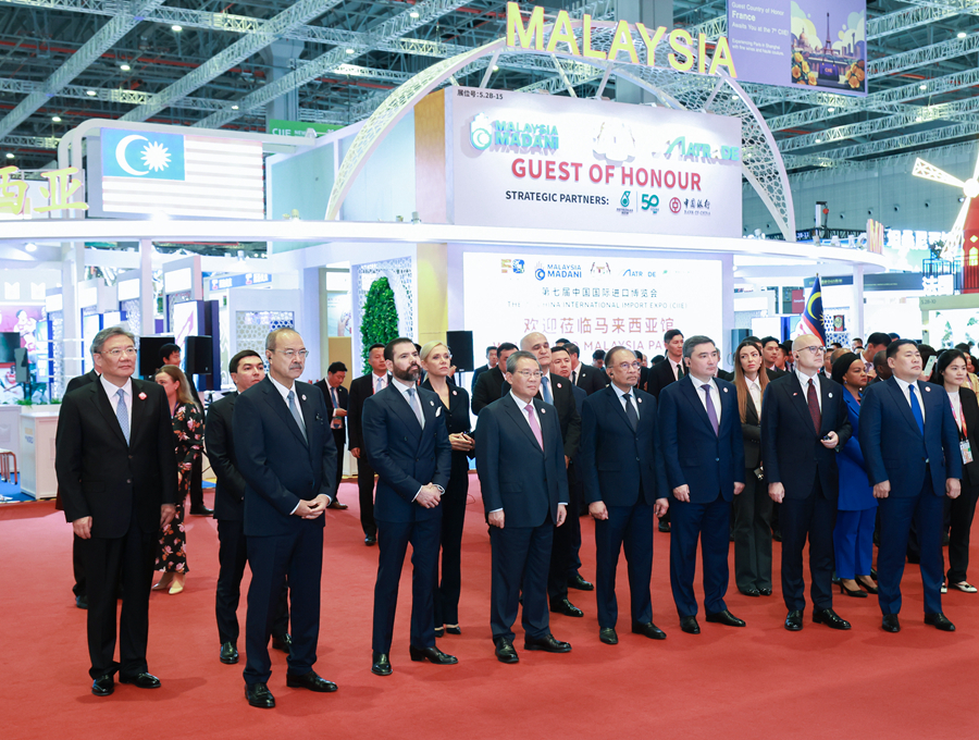 11月5日,國務(wù)院總理李強在上海出席第七屆中國國際進口博覽會暨虹橋國際經(jīng)濟論壇開幕式,并發(fā)表主旨演講。這是開幕式后,李強同與會外國領(lǐng)導(dǎo)人共同巡館。新華社記者 王曄 攝