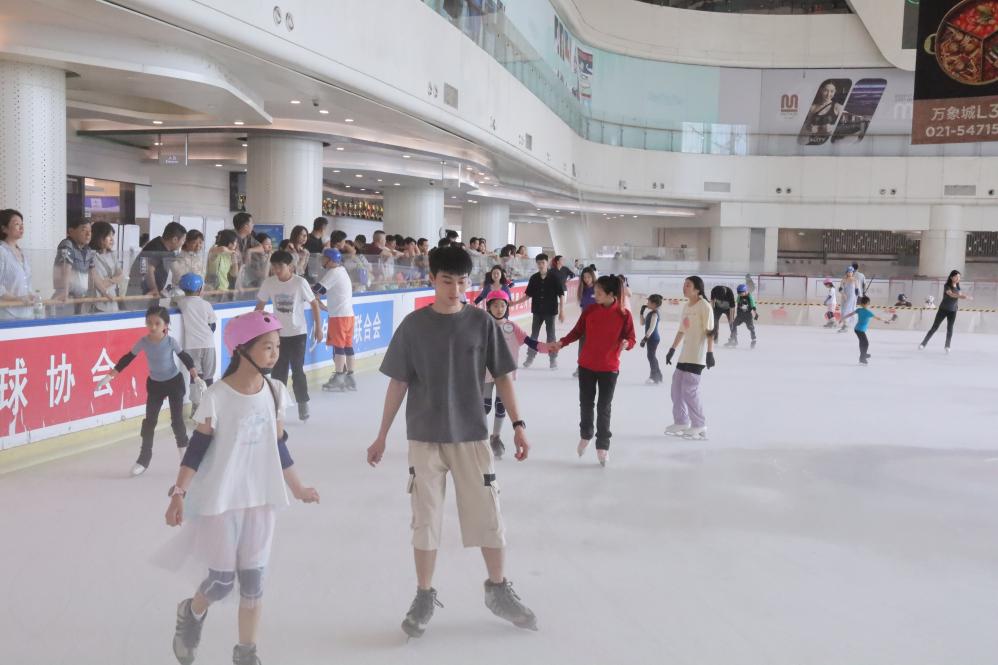 今年7月26日,人們在華潤上海萬象城冰場參加滑冰等冰上活動。(岳遠(yuǎn) 攝)