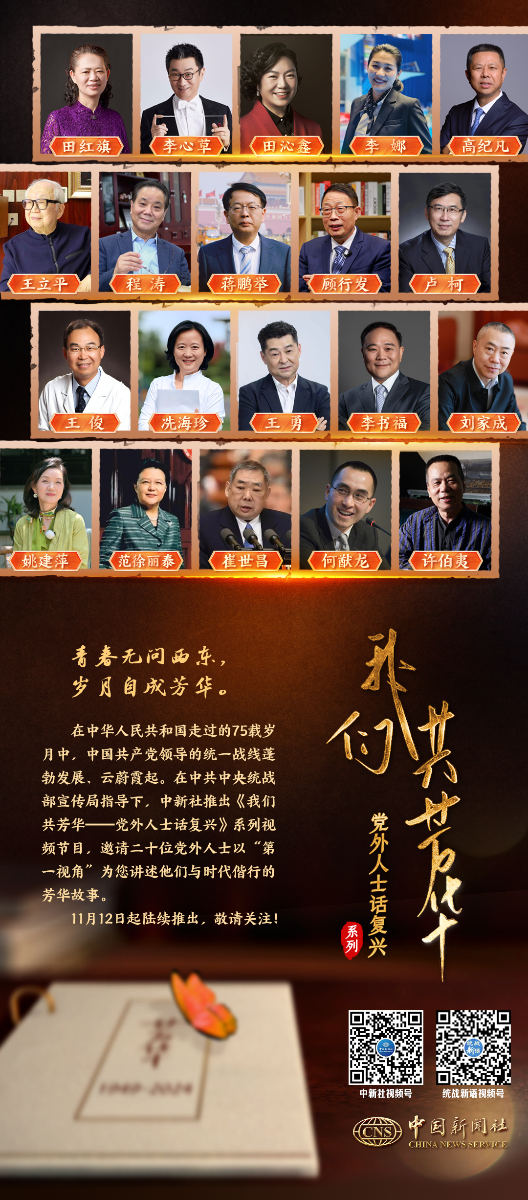 跨山越海,我們赴約依舊,雨雪風霜,待你芳華如初。在中共中央統(tǒng)戰(zhàn)部宣傳局指導下,中新社推出特別策劃《我們共芳華——黨外人士話復興》,“第一視角”講述新中國走過的七十五載光陰。歷時八個月傾情制作,百余場次拍攝記錄二十位嘉賓的芳華記憶。超強嘉賓陣容,請戳海報↓↓↓