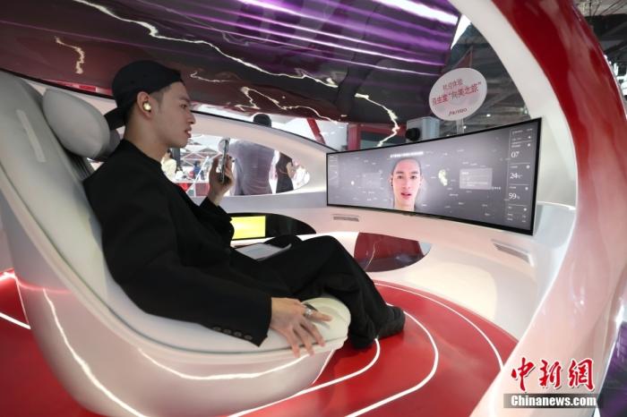 11月6日,參觀者在消費(fèi)品展區(qū)資生堂展位“美時美刻”體驗(yàn)艙檢測膚質(zhì)。第七屆中國國際進(jìn)口博覽會于11月5日至10日在上海舉行。中新社記者 富田 攝