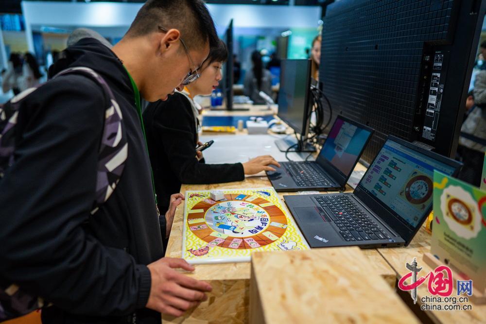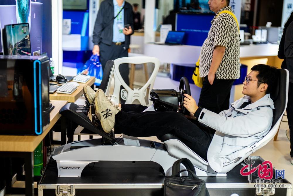 展區(qū)體驗模擬駕駛游戲。中國網(wǎng)記者