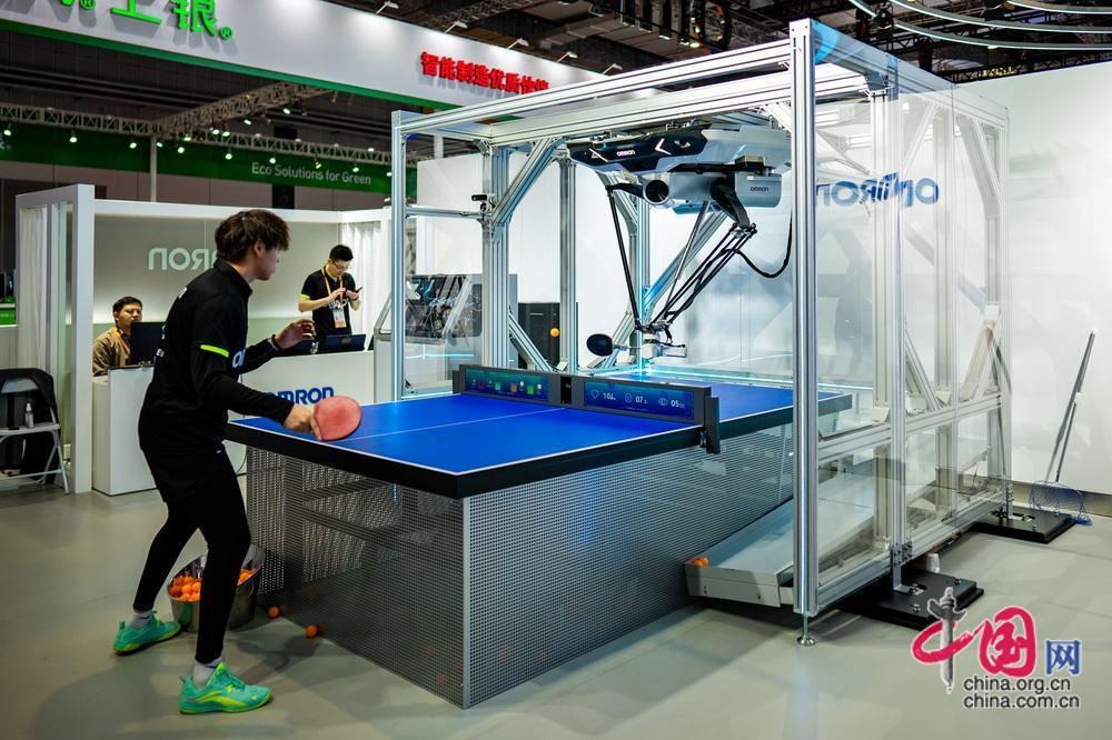 乒乓球教練機器人打球。中國網(wǎng)記者