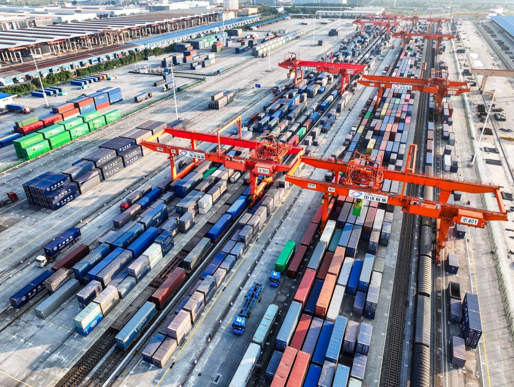 這是陸海新通道重慶無水港(2024年10月28日攝,無人機(jī)照片)。新華社記者 王全超 攝