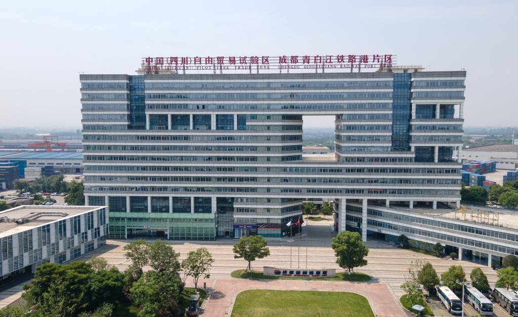 中國(guó)(四川)自由貿(mào)易試驗(yàn)區(qū)成都青白江鐵路港片區(qū)(2024年6月13日攝,無人機(jī)照片)。新華社記者 唐文豪 攝