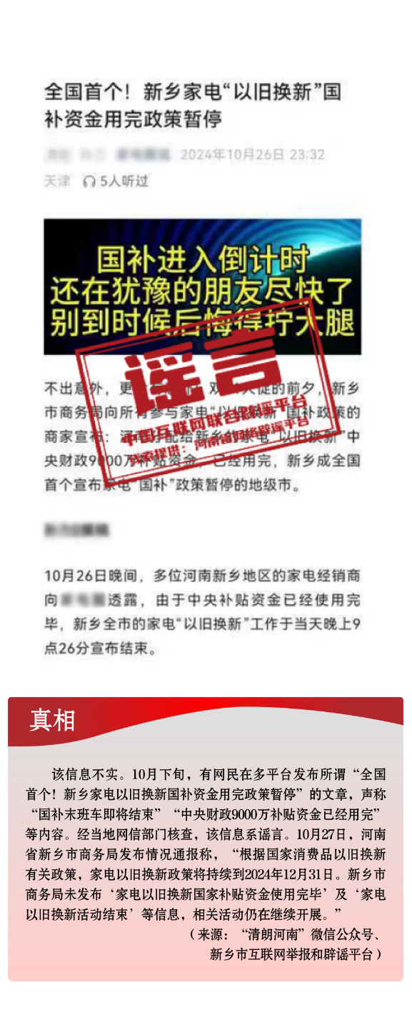 河南新鄉(xiāng)家電“以舊換新”國家補貼資金用完、政策暫停?