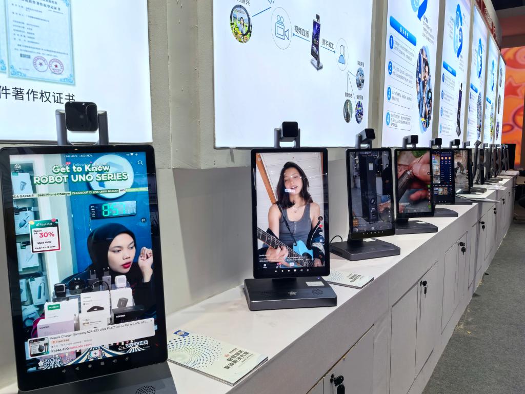 在廣東智慧音視頻科技有限公司的展位前,一排多功能直播智慧機引起了觀眾的濃厚興趣。該公司跨境電商負責人告訴記者,越來越多的中小企業(yè)嘗試“直播+電商”的出海模式,這款產(chǎn)品內(nèi)嵌了短視頻直播的云導播臺,同時借助外貿(mào)專線,方便企業(yè)高效切入海外興趣電商的“賽道”。
