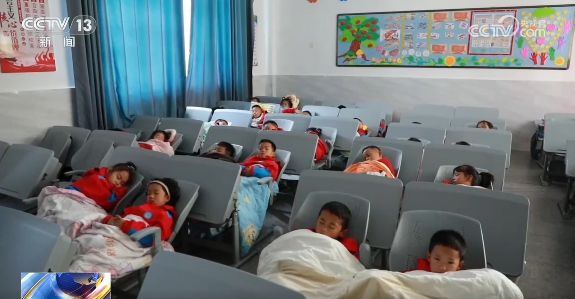這里的課桌椅也與眾不同,可以根據(jù)孩子的身高調(diào)節(jié)高度,椅子向后放倒就變成一張迷你小床。每天午休時(shí)間,孩子們就可以直接躺臥在椅子上睡午覺。