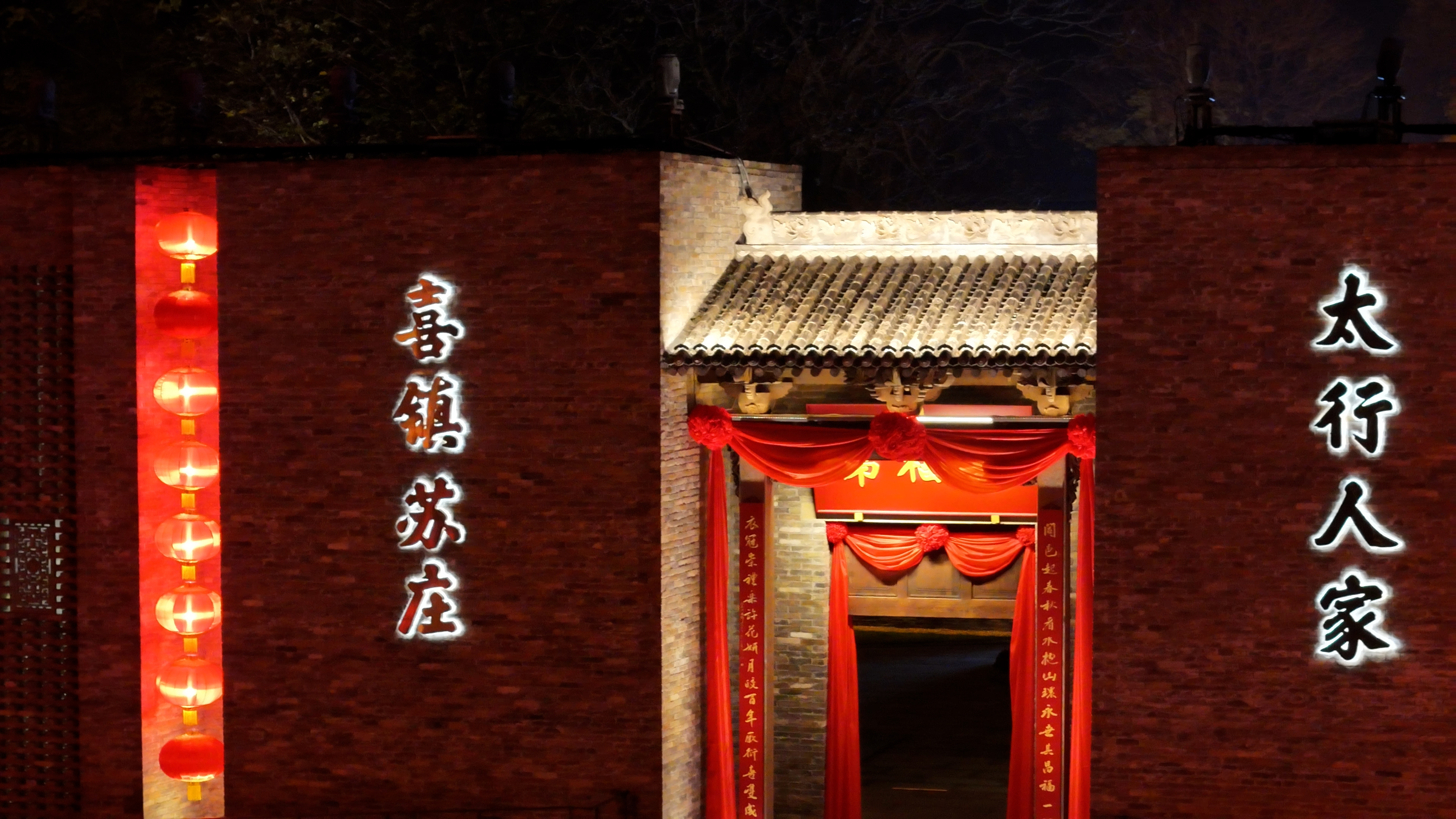 在太行山下,有一個(gè)被喜文化浸潤(rùn)千年的地方——喜鎮(zhèn)蘇莊。11月15日,“萬(wàn)里山河路”山西黃河、長(zhǎng)城、太行三個(gè)一號(hào)旅游公路調(diào)研團(tuán)走進(jìn)晉城,看到入夜的蘇莊紅燈高掛、紅綢飄揚(yáng)、紅楹聯(lián)相映,“人生四大喜”洋溢其間,喜慶氛圍十分濃厚。