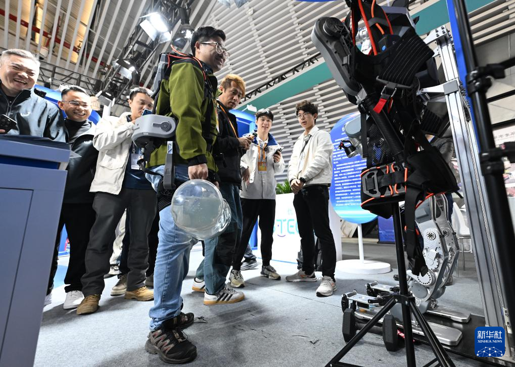 11月19日,在2024年世界互聯(lián)網(wǎng)大會(huì)“互聯(lián)網(wǎng)之光”博覽會(huì)人形機(jī)器人專區(qū),參觀者體驗(yàn)一款外骨骼機(jī)器人。