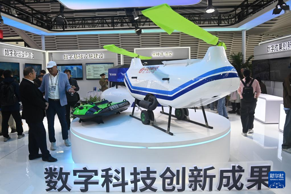 11月19日,在2024年世界互聯(lián)網(wǎng)大會(huì)“互聯(lián)網(wǎng)之光”博覽會(huì)上,觀眾觀摩一架無人駕駛電動(dòng)航空器。