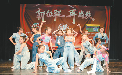 圖為唐韻藝術(shù)團(tuán)成立25周年匯報(bào)演出中,少兒爵士舞班在表演節(jié)目。受訪者供圖