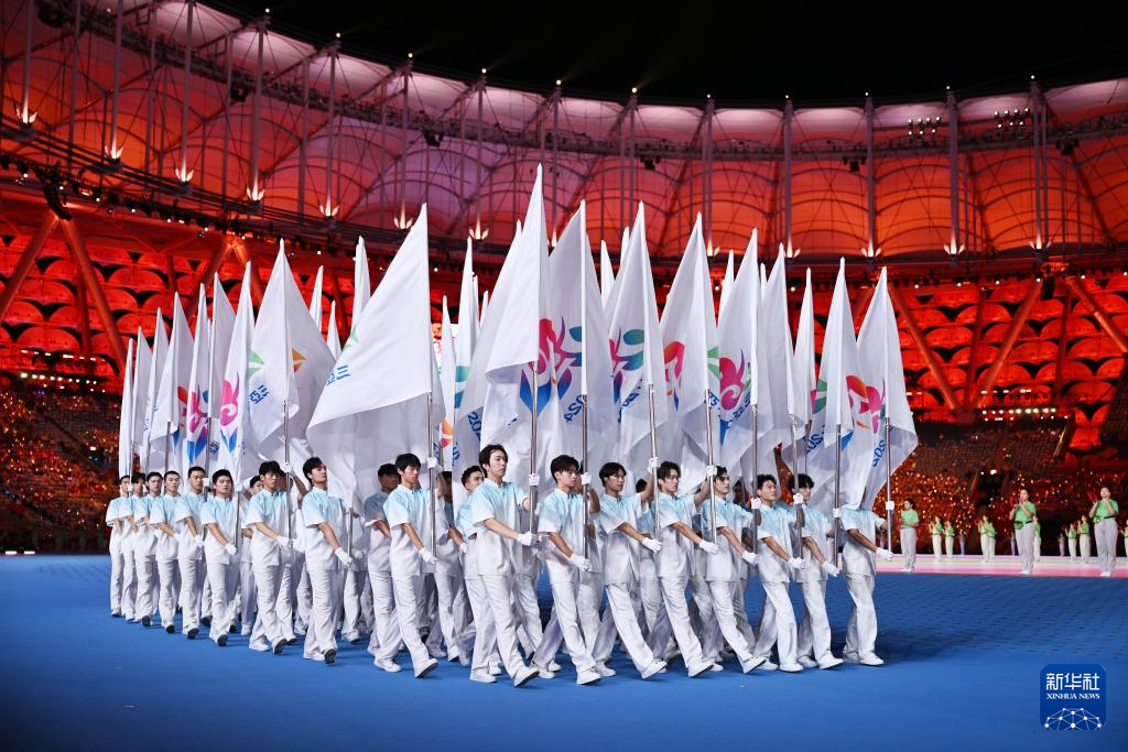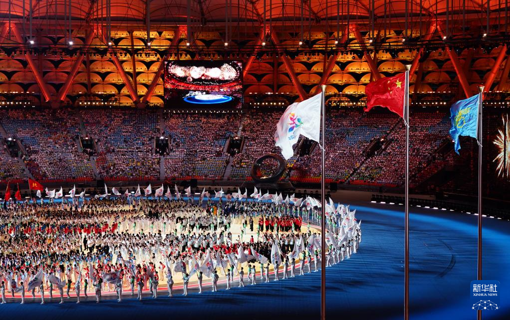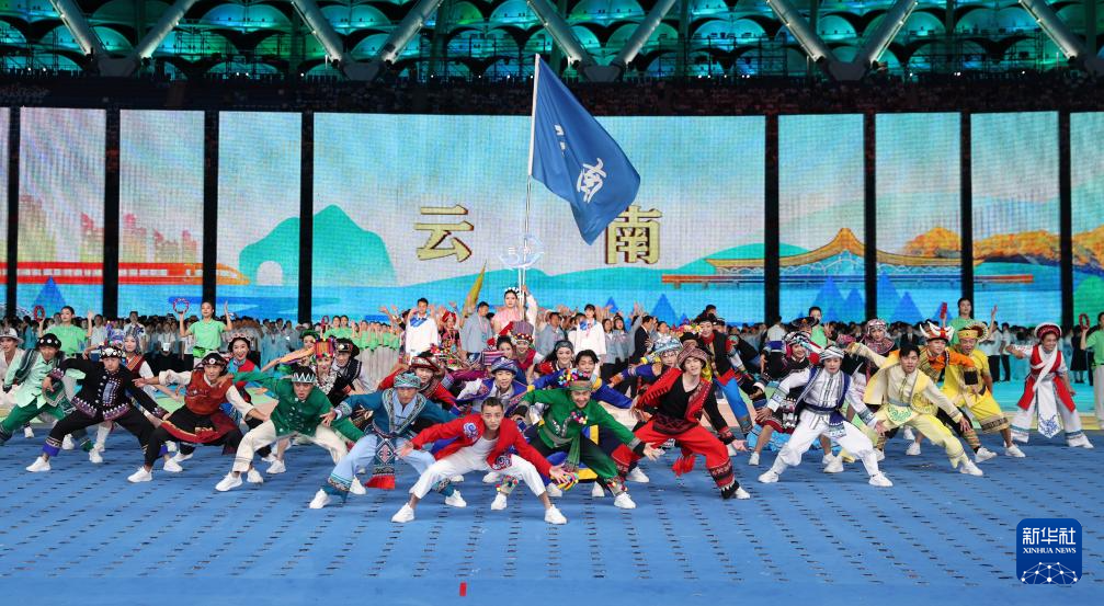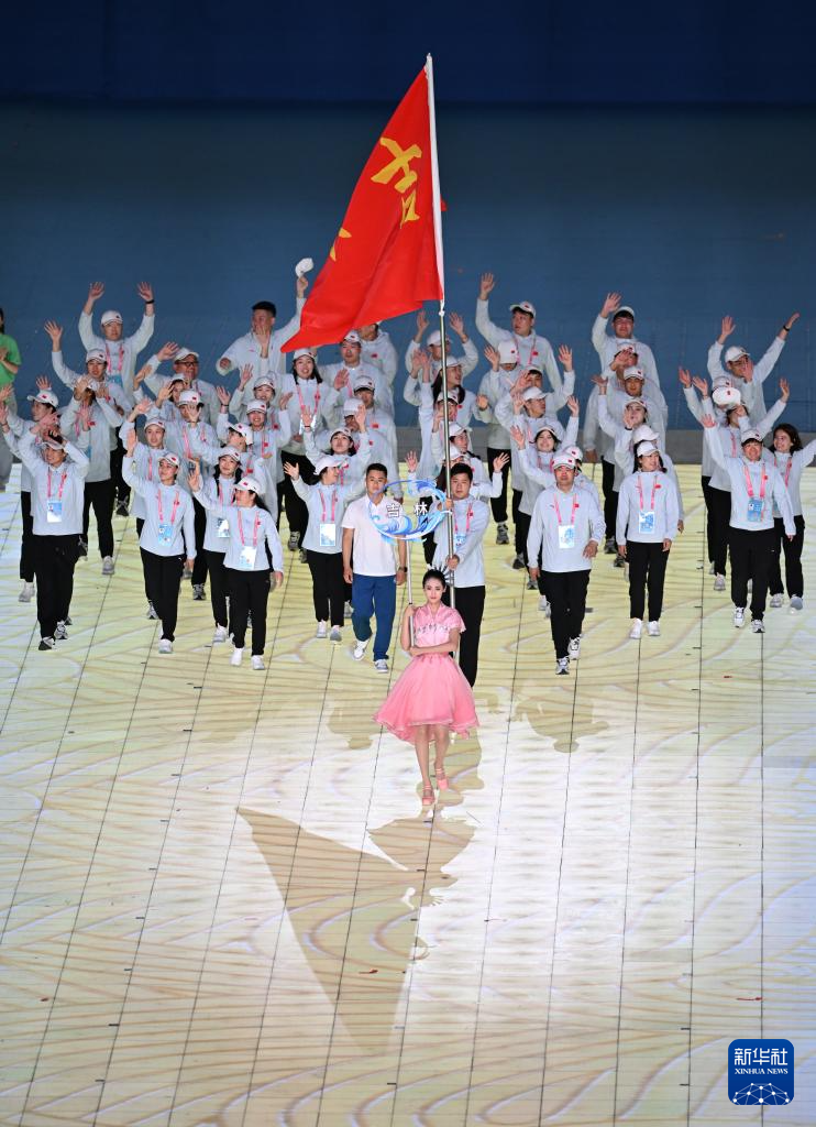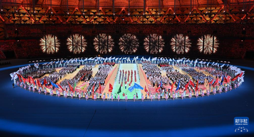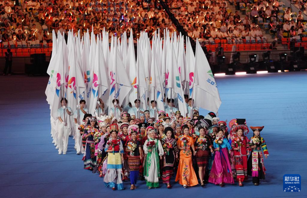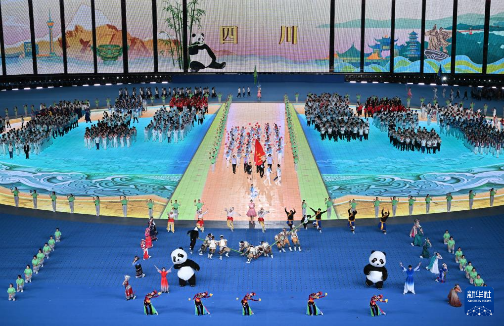 11月22日,四川省代表團(tuán)在開(kāi)幕式上入場(chǎng)。