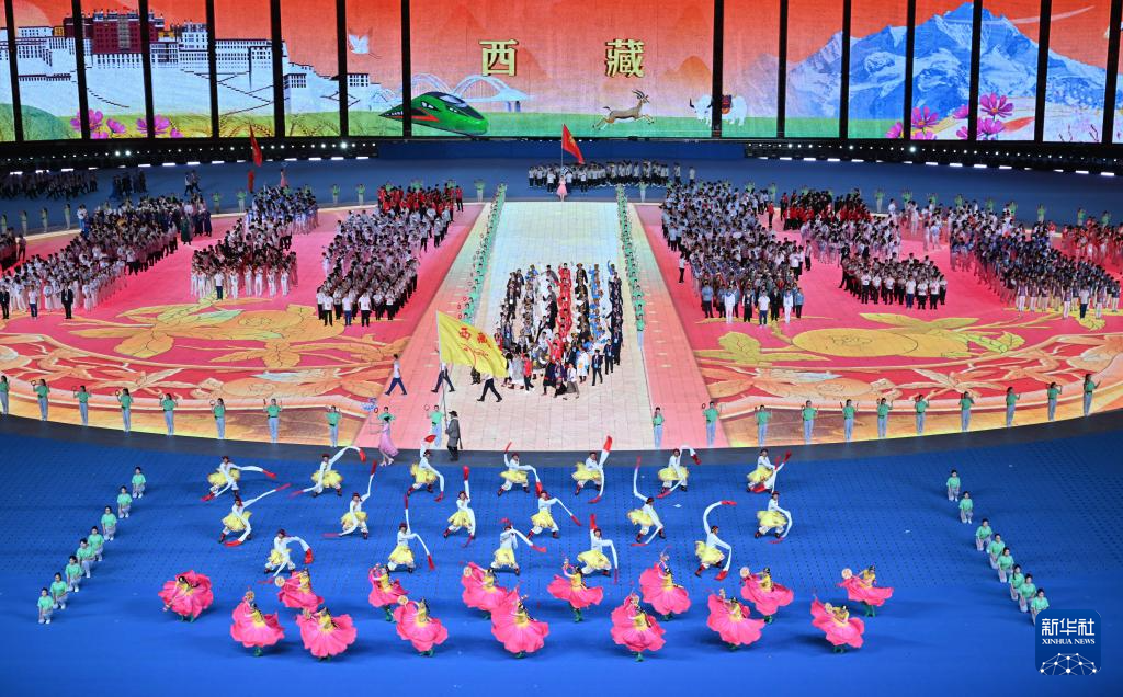 11月22日,西藏自治區(qū)代表團(tuán)在開(kāi)幕式上入場(chǎng)。