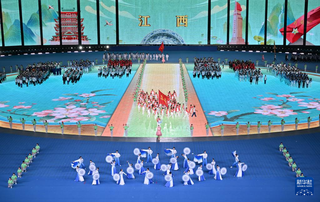 11月22日,江西省代表團(tuán)在開(kāi)幕式上入場(chǎng)。