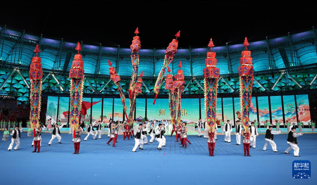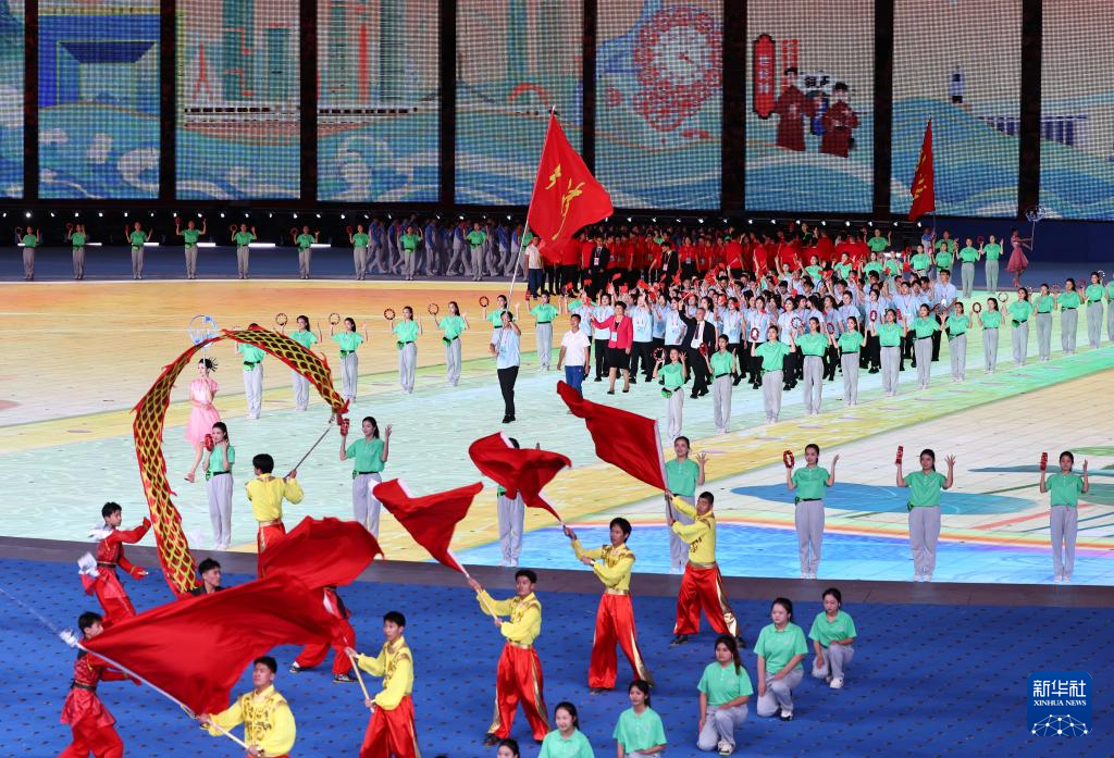 11月22日,湖南省代表團(tuán)在開(kāi)幕式上入場(chǎng)。