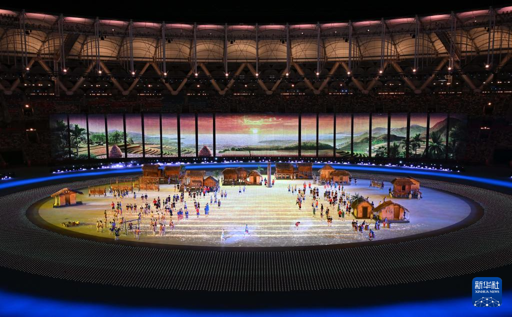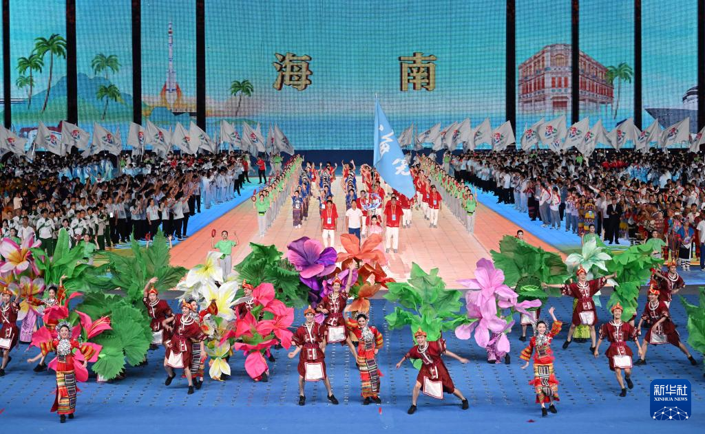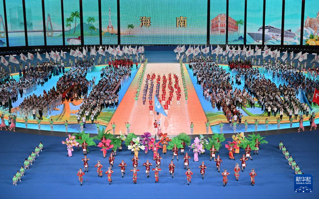11月22日,海南省代表團(tuán)在開(kāi)幕式上入場(chǎng)。