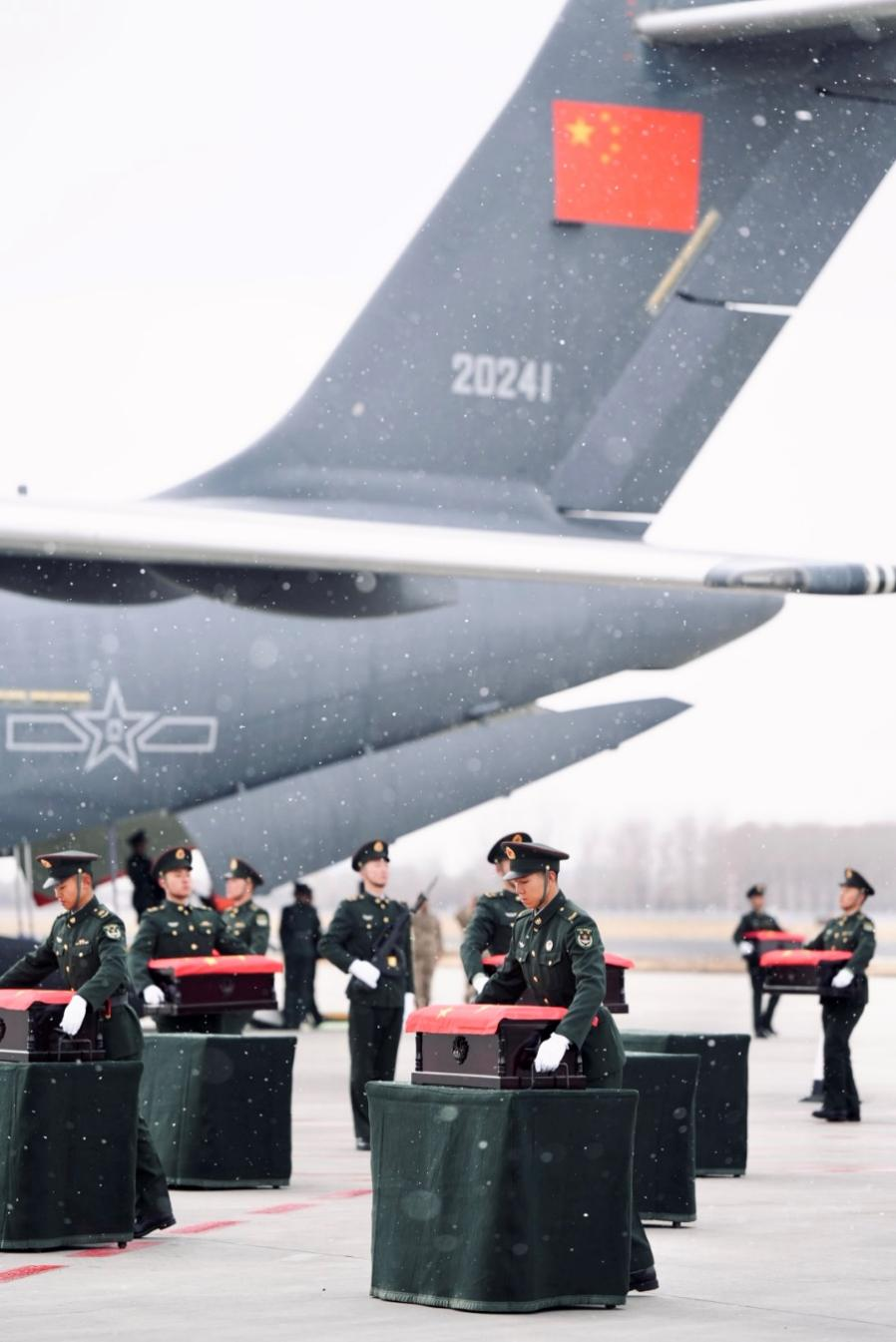2020年,第七批在韓志愿軍烈士遺骸歸國時,中國首次派大型國產(chǎn)運輸機(jī)“運-20”承擔(dān)迎回任務(wù)。