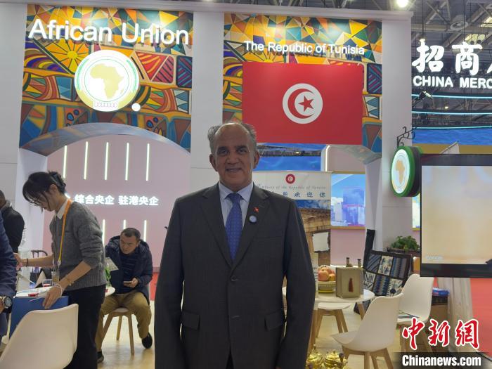 11月26日,突尼斯駐華大使阿迪勒·阿拉比在第二屆鏈博會期間接受采訪。官逸倫 攝