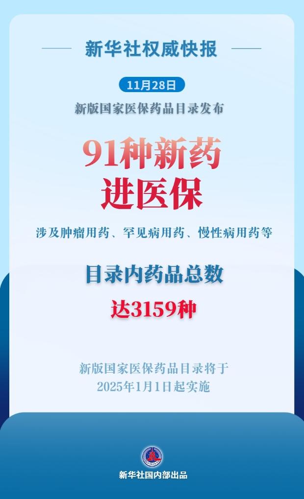 自成立以來,國家醫(yī)保局已連續(xù)7年開展醫(yī)保藥品目錄調整工作。本次調整后,目錄內藥品總數將增至3159種,腫瘤、慢性病、罕見病、兒童用藥等領域的保障水平得到提升。新版國家醫(yī)保藥品目錄將于2025年1月1日起實施。