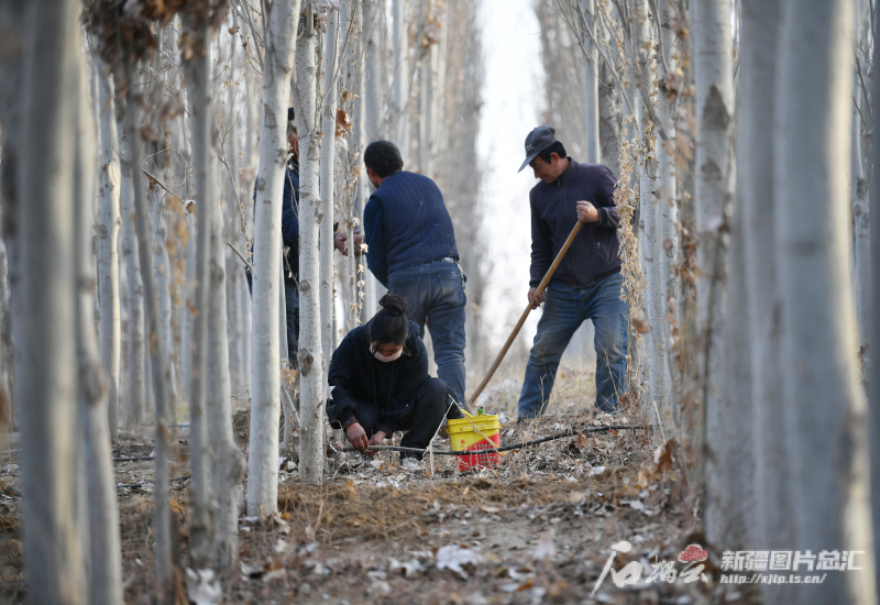 11月28日,護林員在葉城縣20萬畝生態(tài)林基地管護白楊樹。