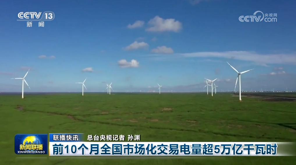前10個月全國市場化交易電量超5萬億千瓦時