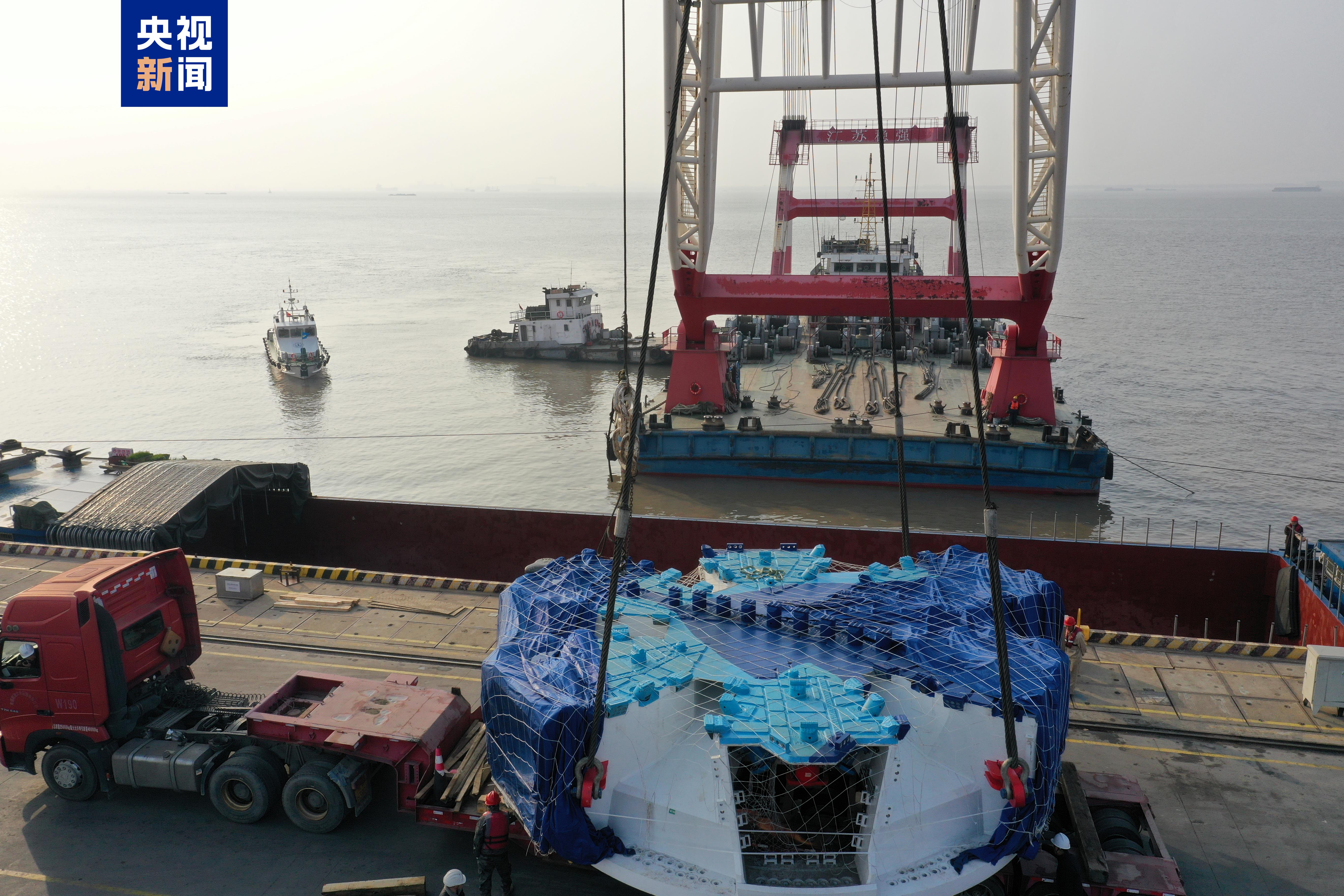 今天(12月3日)9時(shí)許,海太長(zhǎng)江隧道盾構(gòu)機(jī)“江海號(hào)”的刀盤(pán)中心塊運(yùn)抵江蘇南通海門(mén)吊裝上岸,通過(guò)水陸聯(lián)運(yùn)的方式進(jìn)入施工現(xiàn)場(chǎng)。