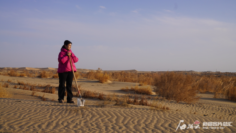 2005年,23歲的帕提古麗來(lái)到且末縣防風(fēng)治沙工作站,成為且末縣首批防沙治沙護(hù)林員。20年來(lái),她不畏艱辛,挖坑栽樹(shù),割蘆葦建草方格,把最美好的年華都奉獻(xiàn)給了這片黃沙之地。曾經(jīng)青春洋溢的少女,如今已步入中年,她用自己的青春換來(lái)沙漠中那一片片生機(jī)勃勃的綠色。