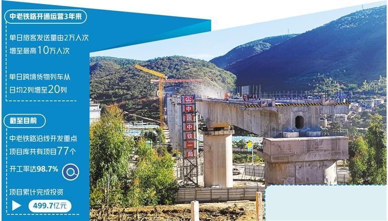 3年來,云南省搶抓中老鐵路機(jī)遇,以通道能力提升、物流樞紐建設(shè)、沿線產(chǎn)業(yè)開發(fā)和經(jīng)營主體培育為重點,切實打造一條開放發(fā)展的黃金道路。截至目前,中老鐵路沿線開發(fā)重點項目庫共有項目77個,開工率達(dá)98.7%,項目累計完成投資499.7億元,投資完成率超66.7%,對促進(jìn)中老鐵路沿線開發(fā)發(fā)揮了重要作用。