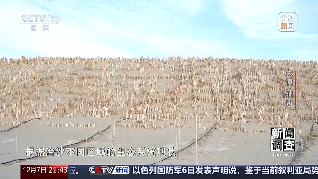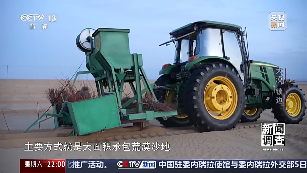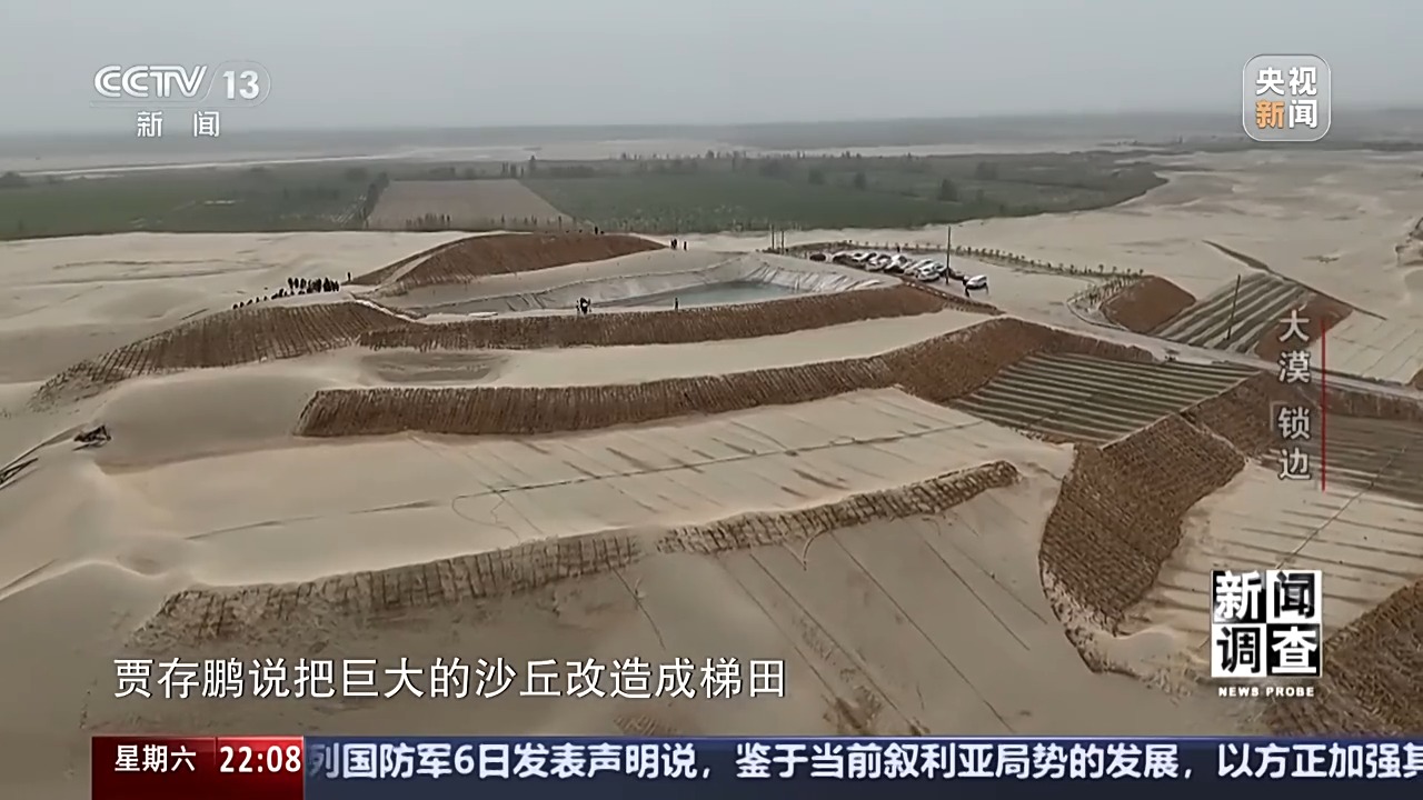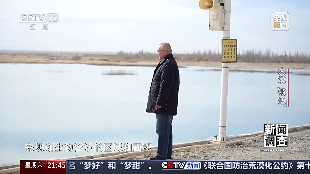 新疆于田縣林業(yè)和草原局黨組書記、副局長 賈存鵬:首先我們要到實地去勘測,只要能有水的,我們?nèi)渴巧镏紊?,沒水的地方是草方格和高立式沙障治沙。