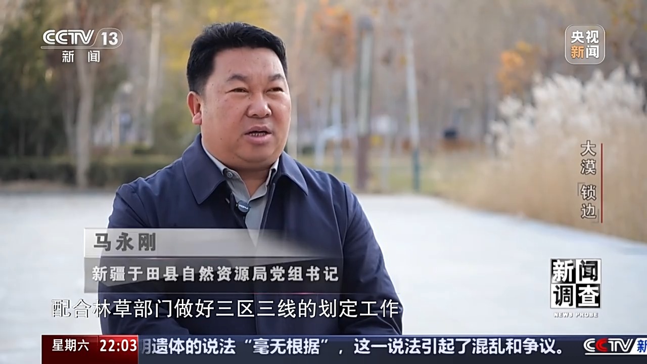 新疆于田縣自然資源局黨組書記 馬永剛:于田縣自然資源局在塔克拉瑪干阻擊戰(zhàn)承擔的就是項目的選址預審,配合林草部門做好三區(qū)三線的劃定工作,三線主要審核了在我們的塔克拉瑪干防沙治沙范圍內(nèi)是否占用了基本農(nóng)田,是否占用了生態(tài)紅線,是否存在有礦產(chǎn)壓覆的現(xiàn)象,是否存在一些相關的土地糾紛問題,進行嚴格復核,并由林草、水利等相關部門同步出具相關的意見。
