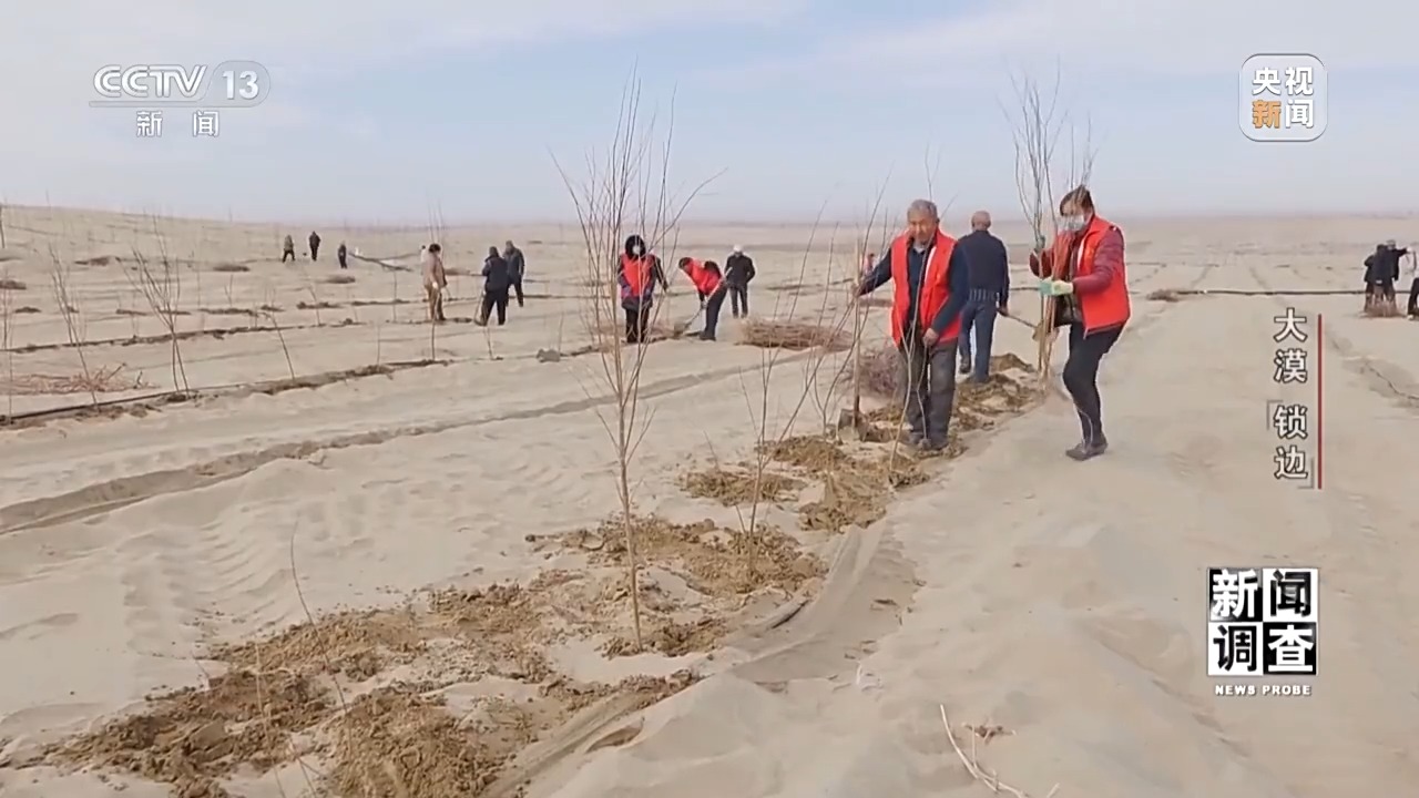 2023年6月,習近平總書記在內(nèi)蒙古巴彥淖爾市主持召開加強荒漠化綜合防治和推進“三北”等重點生態(tài)工程建設座談會,強調(diào)要打好河西走廊——塔克拉瑪干沙漠邊緣阻擊戰(zhàn)等三大戰(zhàn)役。3046公里,是環(huán)繞塔克拉瑪干沙漠一圈的長度。過去40多年,依托“三北”防護林體系工程建設,塔克拉瑪干沙漠周邊已形成長達2761公里的綠色阻沙防護帶。截至2023年底,還剩285公里的空白區(qū)。塔克拉瑪干沙漠邊緣阻擊戰(zhàn)的首要任務,就是要補齊缺口,給沙漠“鎖邊”。
