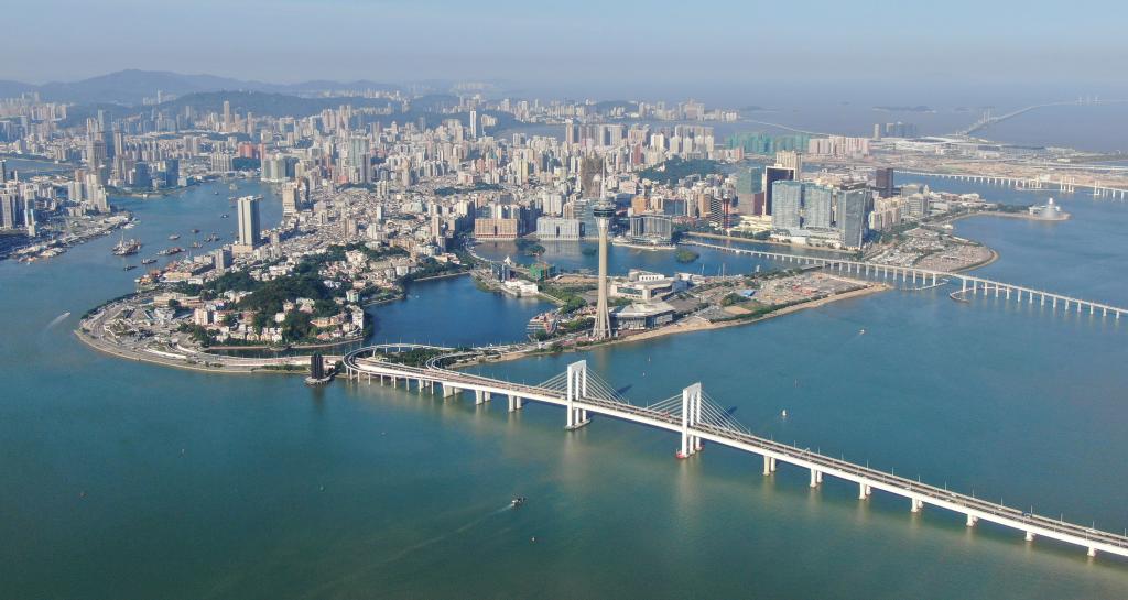2024年11月26日從橫琴方向拍攝的澳門(無人機照片)。新華社記者 鄧華 攝