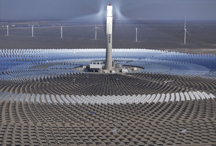 這是2024年9月12日在新疆哈密市伊吾縣淖毛湖鎮(zhèn)拍攝的國家光熱示范項目——熔鹽塔式50兆瓦光熱發(fā)電站(無人機照片)。 新華社記者 胡虎虎 攝