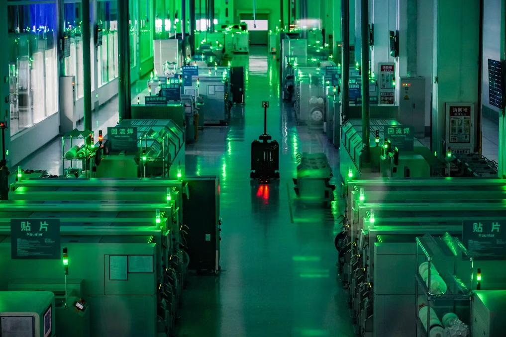 無(wú)數(shù)綠燈依次閃爍,少量工人巡檢其間……在這座達(dá)到業(yè)界標(biāo)桿水平的零碳智造工廠(chǎng),“黑燈”模式下運(yùn)作的電腦主板生產(chǎn)線(xiàn)繁忙卻有序?!拔覀兓凇恕叀啤W(wǎng)—智’新IT技術(shù)架構(gòu),使生產(chǎn)效率提升200%。猜猜看,現(xiàn)在下線(xiàn)一塊主板、一臺(tái)筆記本能有多快?”聯(lián)想天津工廠(chǎng)廠(chǎng)長(zhǎng)于小建給出的答案是,“9秒!”