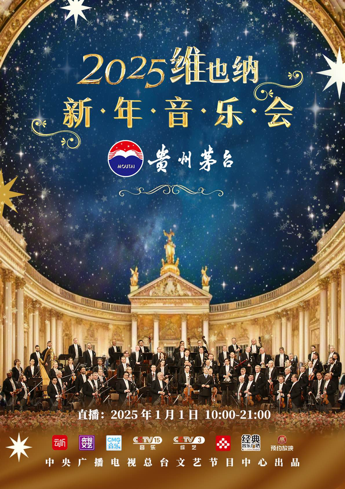 2025年1月1日,央視音樂頻道(CCTV-15)、央視綜藝頻道(CCTV-3)、央視頻、央視文藝矩陣、經(jīng)典音樂廣播、云聽、中影預(yù)約放映等多矩陣播出,讓我們在音樂的陪伴中,度過精彩的新年第一天!