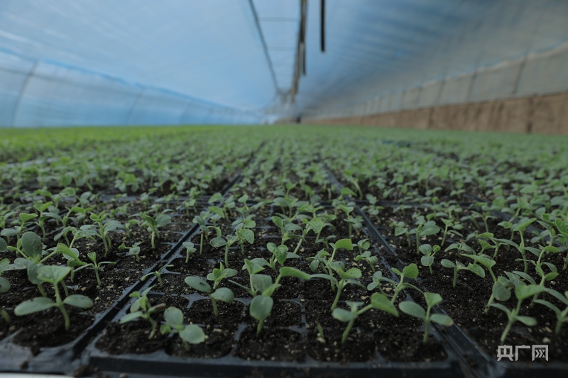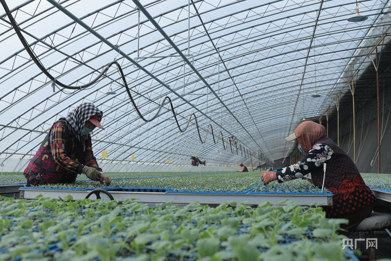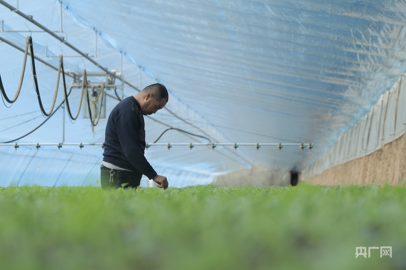 溫室大棚里農(nóng)戶在管理幼苗(央廣網(wǎng)發(fā) 劉九維 攝)