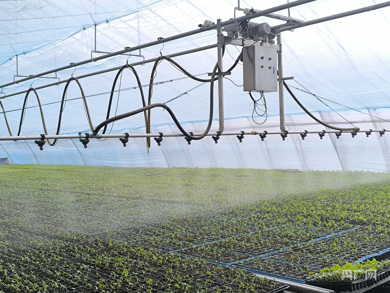 噴淋系統(tǒng)正在給幼苗噴水(央廣網(wǎng)發(fā) 劉九維 攝)