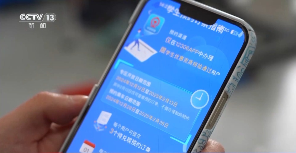 賈小鵬:打開(kāi)12306客戶(hù)端之后就可以看到學(xué)生購(gòu)票專(zhuān)項(xiàng)服務(wù)專(zhuān)區(qū),點(diǎn)進(jìn)去后要先進(jìn)行學(xué)生優(yōu)惠資質(zhì)核驗(yàn)。完成核驗(yàn)之后,根據(jù)提示填寫(xiě)目的地、到達(dá)地、出發(fā)地、出發(fā)時(shí)間、車(chē)次和席別之后,就可以確認(rèn)訂單,然后等待預(yù)約通知。