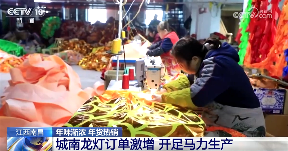 江西南昌的城南龍燈有著700多年的制作歷史。春節(jié)前,當地城南龍燈生產基地訂單激增。數百平方米的廠房內,設置了龍頭、龍身、龍衣、龍尾等制作區(qū),50多名工人都在有條不紊地完成自己的工序。在發(fā)貨區(qū),師傅們忙著裝貨打包,趕在年前給來自全國和海外的訂單發(fā)貨。