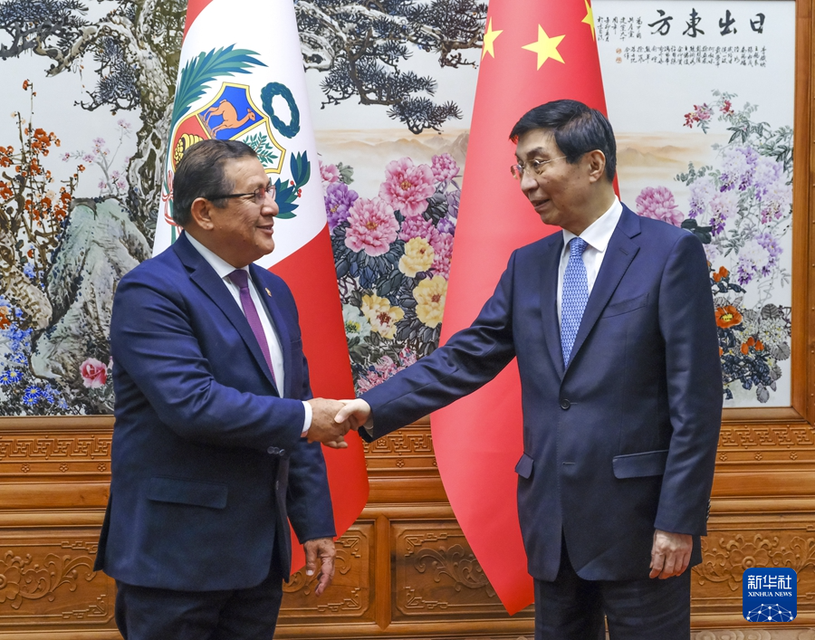王滬寧表示,不久前,習近平主席赴秘魯出席亞太經(jīng)合組織第三十一次領導人非正式會議并對秘魯成功進行國事訪問,開啟了中秘全面戰(zhàn)略伙伴關系的歷史新篇章。中方愿同秘方共同努力,推動中秘關系不斷取得更多成果,更好造福兩國人民。中國全國政協(xié)愿同秘方加強交流合作,為促進兩國在實現(xiàn)國家現(xiàn)代化道路上攜手前行作出貢獻。