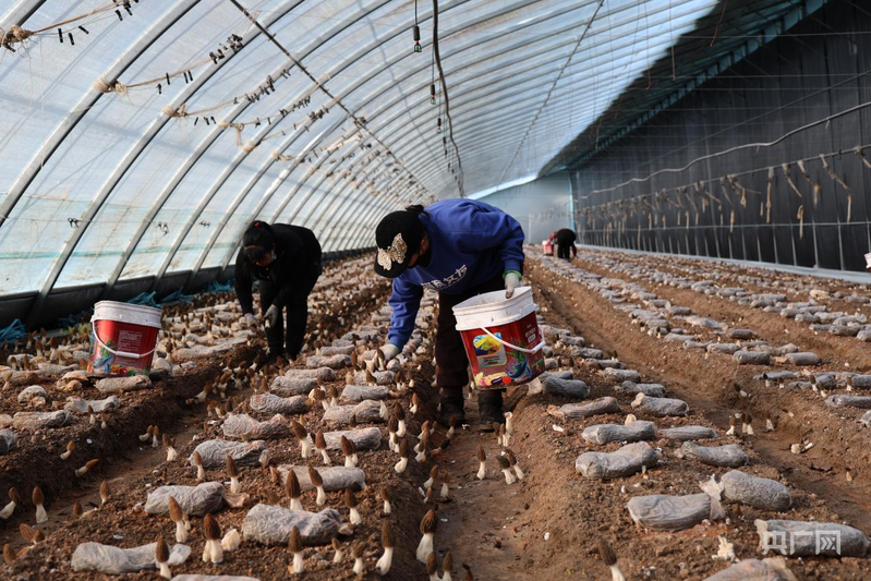 務工者在采收羊肚菌(央廣網發(fā) 胡建華 攝)
