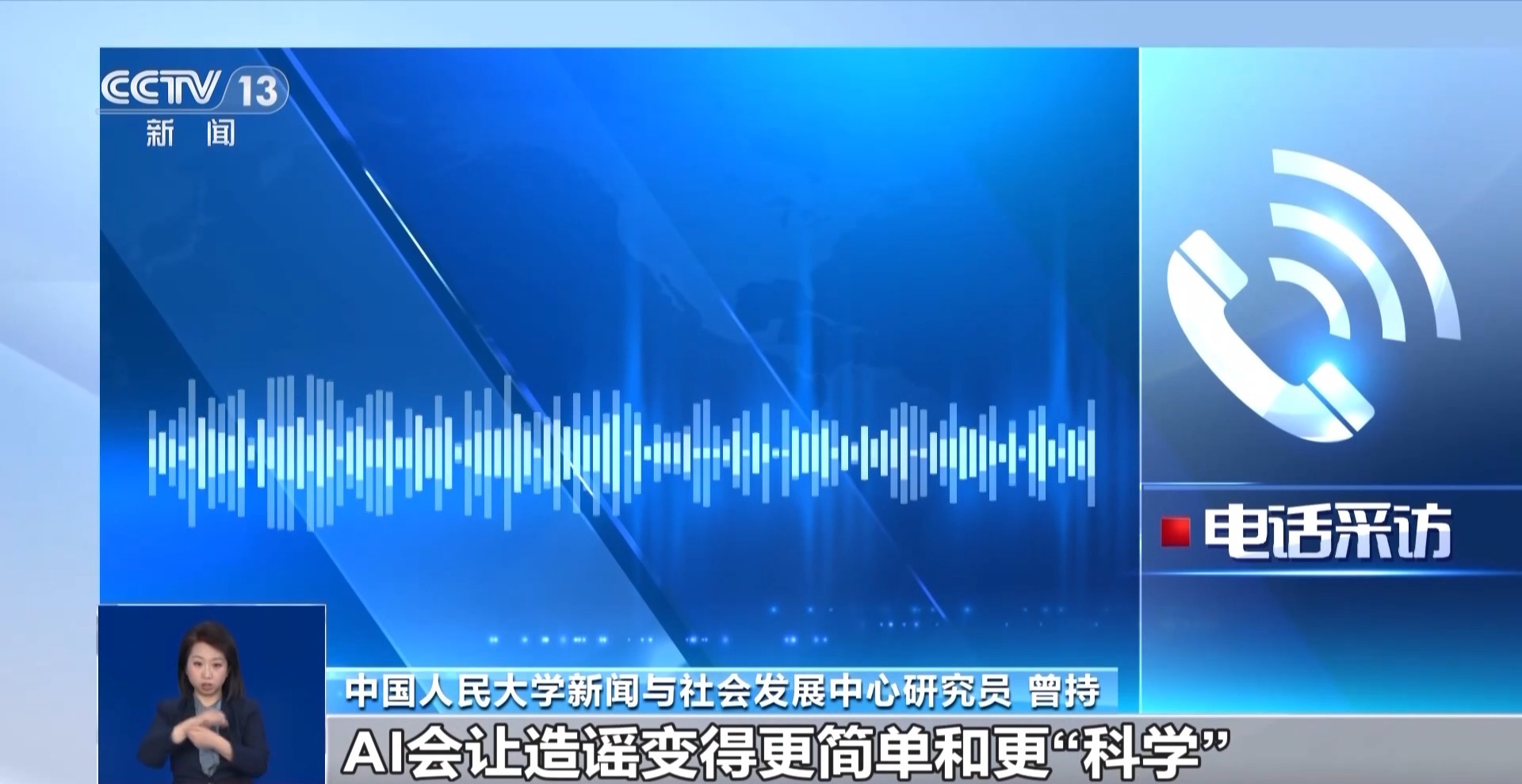 中國人民大學(xué)新聞與社會發(fā)展中心研究員 曾持:在現(xiàn)在的技術(shù)情況下,平臺只能事后懲罰。但是現(xiàn)代社會的傳播速度又太快了,造成的影響太迅速,所以很難在源頭上根治AI造謠的影響。我覺得將來監(jiān)管要從兩個方向努力: