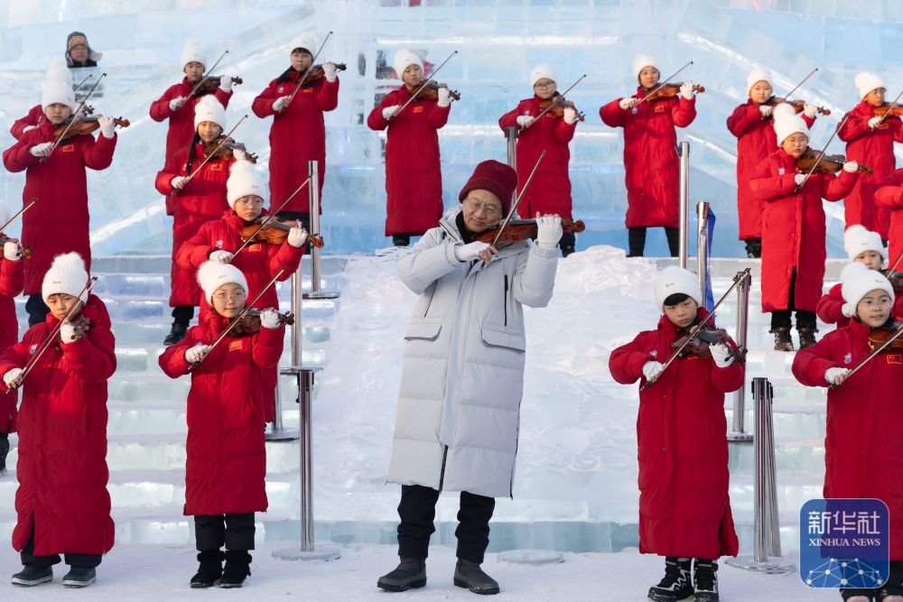 當(dāng)日,哈爾濱冰雪大世界園區(qū)上演音樂“快閃”,為即將到來的亞冬會助力。