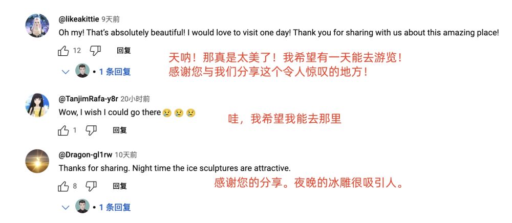 眾多海外博主仿佛找到了“流量密碼”,那就是發(fā)布來哈爾濱旅行Vlog,上傳和冰雕的打卡美照,評(píng)論區(qū)互動(dòng)好評(píng)如潮。